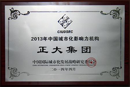 正大集團榮膺“2013年中國城市化影響力機構”榮譽稱号