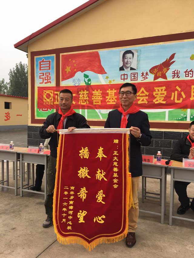 南漳河小學感謝正大慈善基金會的愛心善舉,並贈送錦旗。