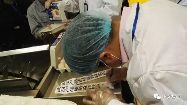 現場,武漢産品質量監督檢驗所方惠文主任、彭勇勝先生對正大雞蛋進行現場抽檢。