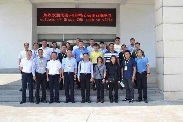 2019年6月18日,正大集團泰國總部可持續發展部與中東南區領導及SHE有效性評估審核組一行15人莅臨洛陽正大審核指導SHE方面工作。參加審核評估的集團可持續發展部領導和專家有:***副總裁Mr.Anek Buranapakdee林志誠、副總裁Mr.Petch Petchmanee杜平、助理副總裁Ms.Lalana Kanokchaipramote葉楚會、總經理Ms.Anchalin Wongskittivimon汪小玲,中東南區領導和專家有:張紹安***總裁、張銅錘副總裁、陳克貝(bèi)助理副總裁、黃德龍助理副總裁等11人。洛陽正大食品王學斌***總裁、沈道華副總裁及各部門負責人接受瞭(le)考核評估。