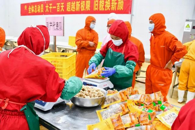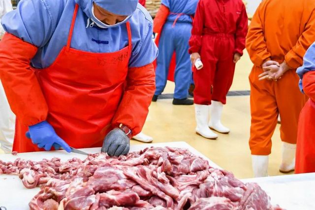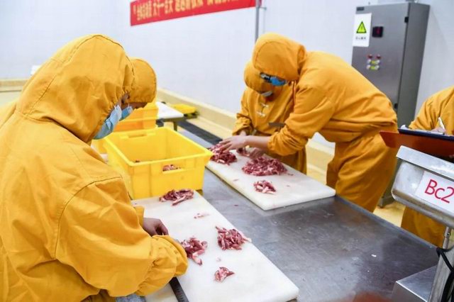 比賽分爲兩個項目:小酥肉原料肉切肉比賽和小酥肉包裝比賽。公司屠宰車間、分割車間、調理品車間、副産車間和熟食車間共派出6支參(cān)賽隊伍。小酥肉原料肉切肉比賽每個隊伍時間限定20分鍾,在20分鍾内根據所切肉條的重量和完成質量評定名次。鍋圈小酥肉包裝比賽每個隊伍包裝300袋(約80kg)小酥肉,根據所用時間和包裝合格率評定。比賽開始之前,熟食廠經理張沛宣布瞭(le)比賽的規則,叮囑參(cān)賽選手在比賽中注意安全,随後比賽拉開瞭(le)帷幕。