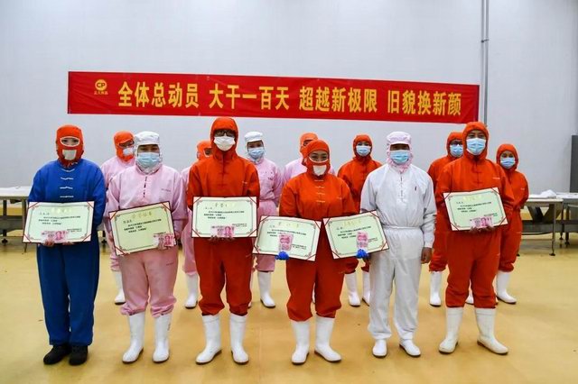 爲實現經營目标,鼓舞員工士氣,以創優質、創***、保生産爲目标,提高工作效率,營造奮發上進的工作氛圍,同時響應集團号召舉辦“一線員工職業技能評比大賽“活動。洛陽正大食品事業部於(yú)11月5日在熟食車間隆重舉辦“洛陽正大食品事業部勞動競賽”。公司食品事業部副總經理杜光輝、人力總監金玲、人力資源部經理文俊雅、生産車間各廠長出席瞭(le)本次比賽。