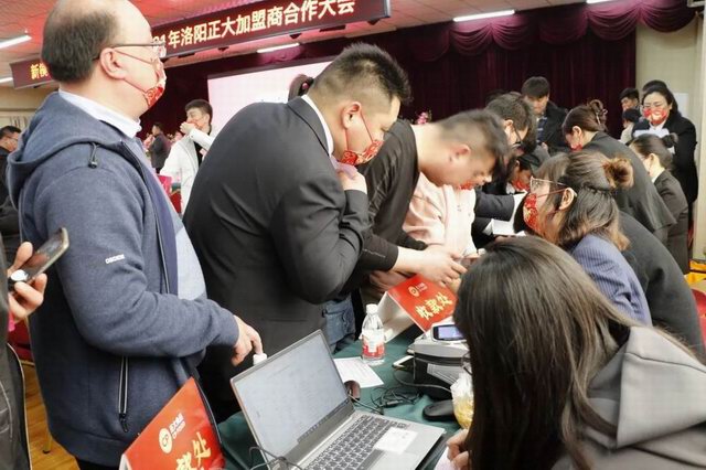 爲加快推進終端加盟渠道建設,實現“百城千店”規劃目标,3月9日下午,洛陽正大誠邀瞭河南省内18地市的120餘位加盟商合作客戶和意向客戶,齊聚千年帝都牡丹花城——洛陽,並在洛陽國寶鉑瑞酒店隆重舉辦酒席宴請賓朋。