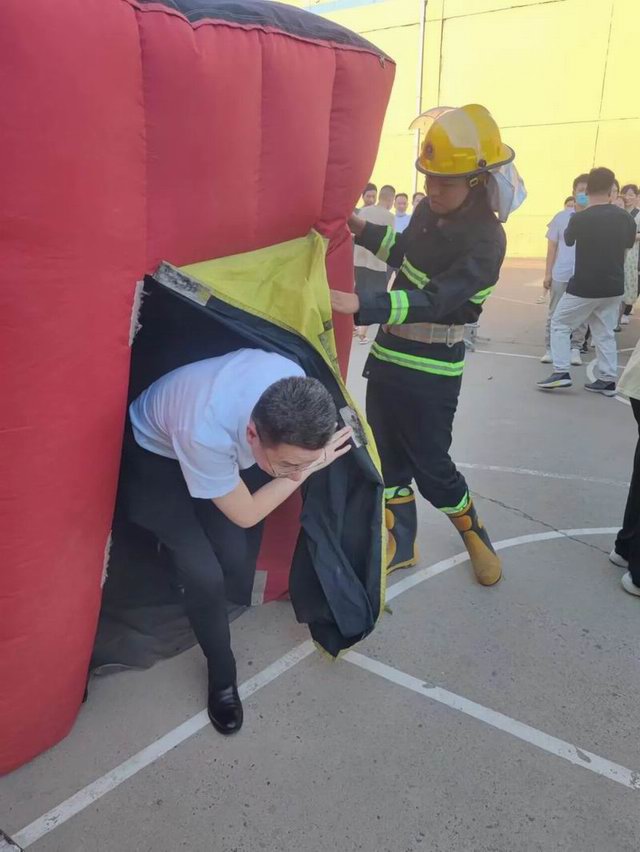 曲建華(huá)副總裁親自帶(dài)頭體驗逃生帳篷項目