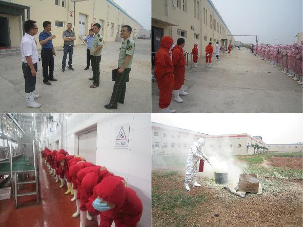 吉林德惠寶源豐禽業發生特大事故,造成120人遇難,在全國安全月伊始之時發生如此重大事故,教訓慘痛。爲吸取這一慘痛的經驗教訓,落實於(yú)董事長關於(yú)安全整頓的要求,進一步增強員工安全意識和自我救助能力,公司於(yú)2013年6月7日在各分廠車間、制冷機房和廠區空地三處演習地點舉行瞭(le)緊急疏散、液氨洩漏緊急處置和消防滅火的實戰演練。