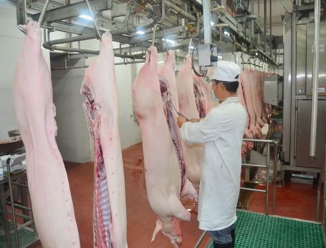 毛豬車輛入廠(chǎng)時嚴格車輪消毒池和人員專用通道消毒;卸車後經過清洗、消毒、烘幹等環節徹底消殺後方可出廠(chǎng),確(què)保安全;