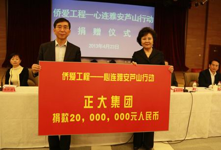 正大爲雅安災區捐款2000萬元