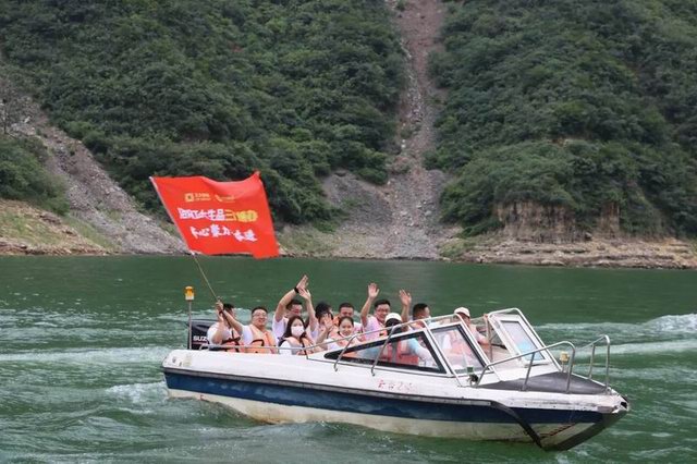 8月17日下午13時,團建隊伍前往雲台山紅石峽風景區,各團隊你追我趕,團隊成員相扶相攜。大家沿著(zhe)既定的路線,個個精神抖擻,臉上洋溢著(zhe)快樂的笑容,一面欣賞優美風光,一面在徒步中留下一片歡聲笑語。下午15時,所有戰隊順利完成瞭徒步挑戰,成功抵達終點站。即使汗水浸濕瞭每個人的衣衫,但炎熱和疲憊沒有阻擋大家的前進,也沒能讓隊伍行進的速度有一絲一毫的減緩。團隊的信念激勵並(bìng)支撐著(zhe)大家不畏艱難地一直走下去,徒步如此,集團發展的腳步亦是如此。随後,團建隊伍帶著(zhe)隊旗登上快艇,穿梭於山水之間,正如生品銷售團隊披荊斬棘、尋光而行,乘風破浪、追夢奔跑。至此,本次團建活動也***落幕。